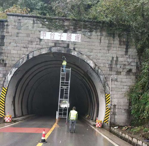 在打鼓梁隧道和凉桥隧道照明改造现场,工人们在隧道拱顶和侧壁,忙碌着安装自发光构件、自发光诱导装置、自发光诱导标识、智能控制集成等配套元器件,施工现场如火如荼。