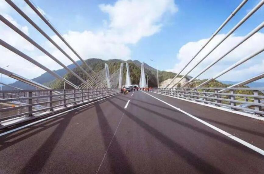 洪溪特大桥全长571米,主跨265米,塔高177米,是亚洲跨径最大的双塔双索面矮塔斜拉桥。“该桥是整个文泰高速最为关键的控制性工程,因地处峡谷,两侧地势陡峭,桥面至谷底260米,施工难度极大。”承建该桥的文泰四标项目经理张立锐介绍说。