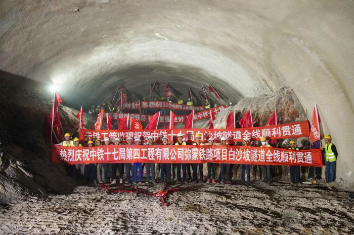 经过最后一次爆破施工,由中铁十七局承建的云南弥(勒)蒙(自)铁路白沙坡隧道26日贯通。该隧道是弥蒙铁路最长的Ⅰ级高风险隧道,标志着弥蒙铁路工程建设取得阶段性进展。