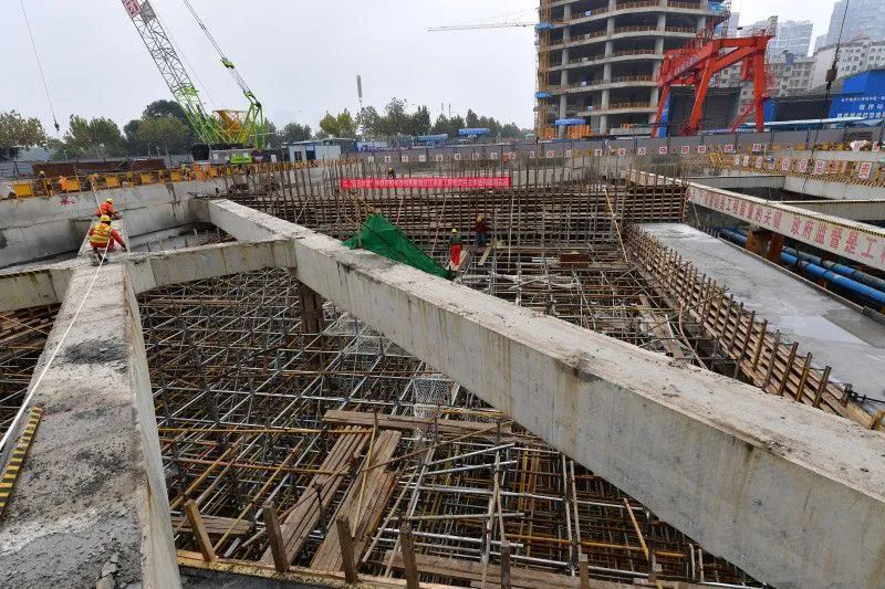 在施工中,项目还克服了管线迁改难、施工场地狭小等困难;为了加快施工进度,项目部采用放坡开挖、台阶开挖和垂直开挖3种方式相结合,最高峰时800多名工人,每天24小时不间断施工,最终历时9个月实现盾构始发井主体完工,为接下来的盾构进场施工创造了良好条件。