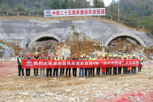 11月30日,渝湘复线高速公路彭酉路4标杨风岩隧道进口举行了进洞施工仪式。