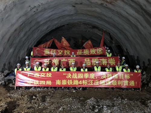 12月2日,由中国中铁四局承建的新建南宁至崇左铁路全里程岩溶隧道——汪庄隧道正式贯通,为下一步全线通车打下坚实基础。