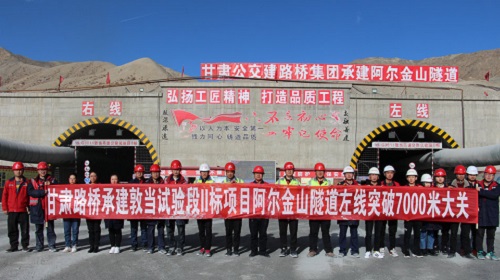 据了解,敦煌至当金山口高速公路是国家高速柳园至格尔木公路的重要组成部分,主线起点位于敦煌市,终点与青海省当金山——大柴旦段高速公路连接。而敦当试验段Ⅱ标的阿尔金山特长隧道地质复杂,施工难度大,是敦当高速公路全线施工难度最大的控制性工程之一。阿尔金山隧道围岩自7月份以来,进入断层破碎带段,施工中遇到围岩破碎、软岩大变形、小块状构造坍塌等不利因素,导致各洞口平均日进尺不足1.5米。针对以上情况,项目部采取多项举措为啃下这块“硬骨头”攻坚克难保目标。此次隧道掘进成功突破7000米大关,鼓舞了项目全体参建人员的士气。