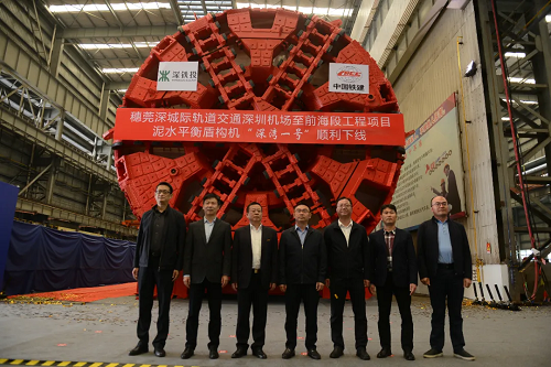 “深湾一号”为深圳铁路投资建设集团首台大直径泥水平衡盾构机,开挖直径9.14m,全长约127m,总重约1300t。它将承担起下穿前海西湾海域的任务。西湾海域是全线唯一的穿海段水下隧道,穿海段总长约3100m,花岗岩地层强度高达105Mpa,岩面起伏大。这也是目前国内连续下穿海域距离最长、连续掘进高强度花岗岩地层距离最长的海底隧道,项目由中铁十四局集团有限公司承建。由于施工需要长距离在海底、硬岩、高水压状态下独头掘进,风险较高,对盾构机的密封性能、带压换刀作业能力、长距离掘进中的控制测量技术,都提出更高了要求。项目自进场以来,在短短不到4个月的时间里,首台盾构机“深湾一号”从设备选型、设计联络,到工厂预装、总装,最终完成调试下线。