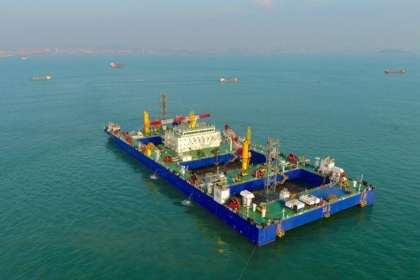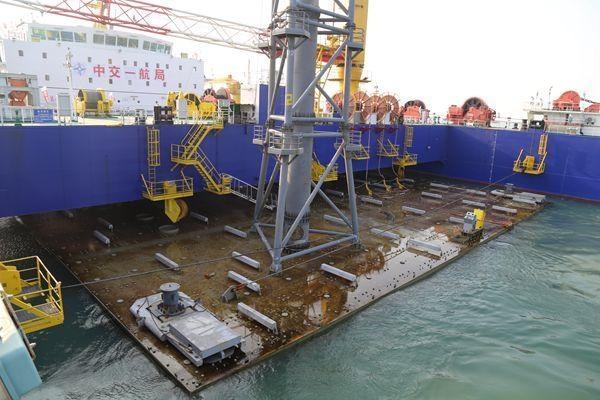 世界首制沉管运输安装一体船提带E6管节至沉放隧址。通讯员供图 深中通道是国家“十三五”重大工程和粤港澳大湾区核心通道,是集“桥、岛、隧、水下互通”于一体的超级跨海集群工程。该项目全长24公里,采用设计速度100公里/小时的双向8车道高速公路技术标准,计划2024年建成通车。
