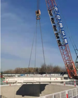 在北京东六环改造工程的施工现场,“运河号”盾构机首个部件——二号台车开始下井组装作业。二号台车是“运河号”盾构机的组成部分之一,该台车主要配置有空压机储气罐等盾构机部件。在所有台车和刀盘完成组装和调试后,条件具备时进行盾构隧道掘进施工。