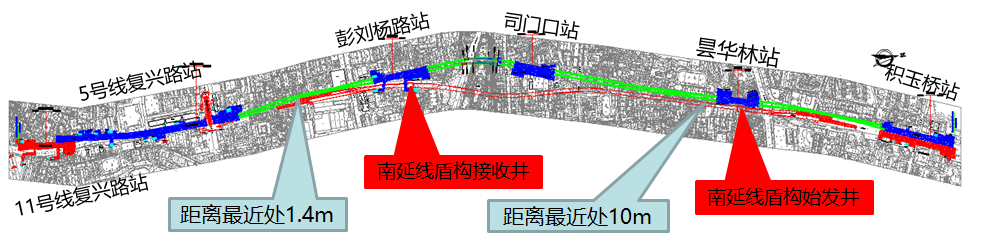 武汉地铁5号线三标工程包含6站4区间,线路全长3.67公里。起点位于武昌区复兴路与二环高架交叉口,沿复兴路向北穿越张之洞路、彭刘杨路、长江大桥匝道桥、黄鹤楼景区、京广铁路、民主路、得胜桥棚户区、延着和平大道主干道,最终到达积玉桥站。