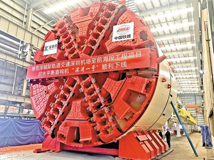 近日,穗莞深城际轨道交通机场至前海段工程项目(下称“穗莞深城际机前段”)首台泥水平衡盾构机“深湾一号”在铁建重工广州南沙工厂成功下线。