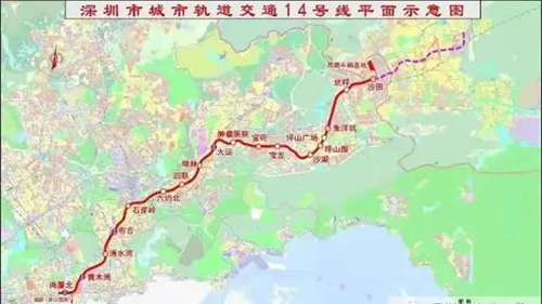14号线是深圳市域快线网络中东部首条线路,起始于岗厦北,终于沙田站,全长约50.34km,连接起福田区、罗湖区、龙岗区、坪山区,并早已预留延伸至惠州的条件。