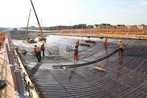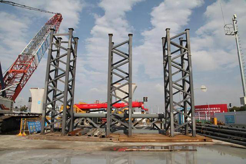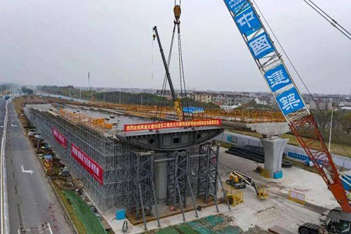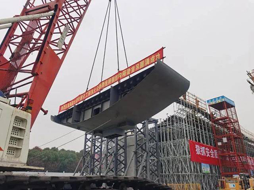 “考虑到要保证东大公路交叉口的交通出行,我们采用了钢箱梁的结构形式,它的模架支撑体系采用的是胎架,现场也看到了两跨胎架之间的距离是相当大的,在吊装的过程中有效地保证地面通行,达到了出行、工期两不误的效果。”