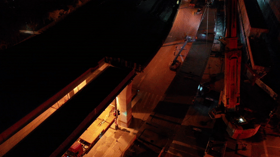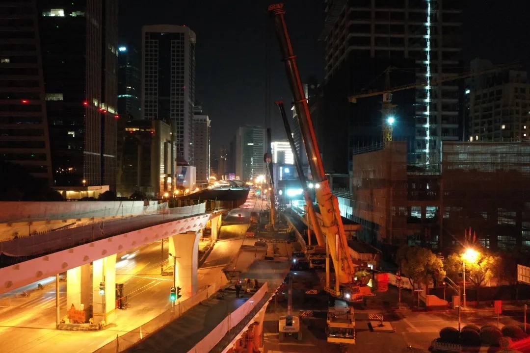 12月21日,随着工程四条改建匝道之一的T3D落地匝道的最后一段钢箱梁“拼装”就位,北横通道建设难度最大标段之一的天目路高架全线(含匝道)钢结构实现贯通,比原定的12月31日提前10天完成。届时,通过天目路大转盘将实现北横通道同南北高架互通。