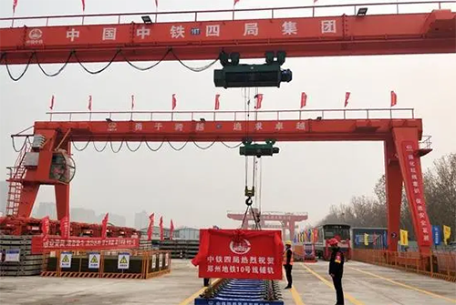 12月28日,在中铁四局郑州一中站铺轨基地内,随着开铺命令的下达,龙门吊缓缓将第一排轨吊铺至指定位置,标志着郑州市轨道交通10号线一期工程正式开始铺轨施工。