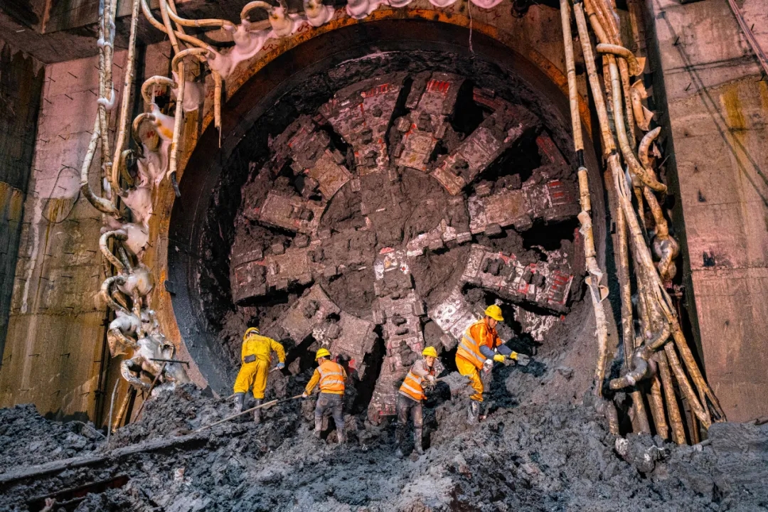至此,14号线全线盾构区间隧道全部贯通。全线盾构区间总长57.8公里,共计62个盾构区间,总共投入60台盾构,自2017年4月1日第一台盾构开始推进,历时1369天完成了全线区间盾构贯通。
