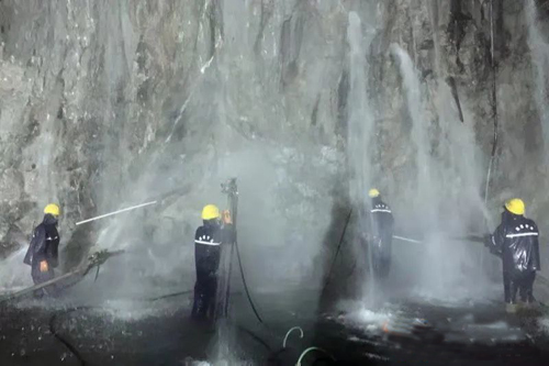 2019年4月隧道掌子面开始出现高压涌水,在持续近一年的时间里,累计涌水量相当于3个西湖的水量,我们比喻这是在湖底打了个隧道,“水中跋涉”成为常态。而由于鸿图嶂海拔较高,我们这条隧道的埋深大概在740米,比广州塔的高度还高出100多米。