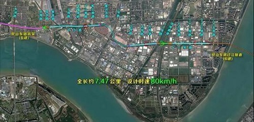 快速路主线为双向六车道规模,设计时速80公里/小时,全线设置7对转换匝道,总投资约64亿元。