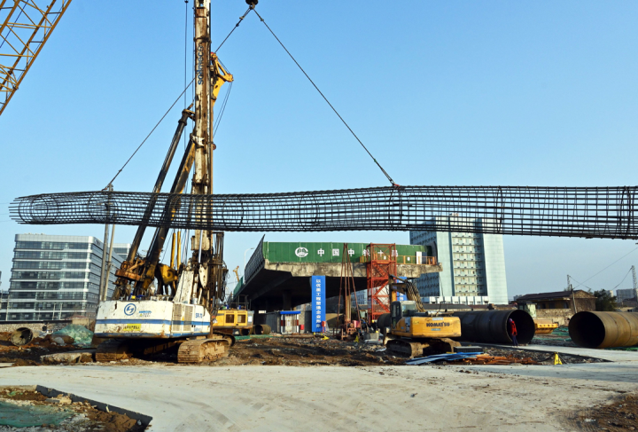 目前上跨京沪铁路桥梁工程已经完成钻孔桩2根,基坑围护桩87根。本项目桩基作业已全面展开,桩基进场机械已达10余台,桩基进场人员50余名且均已完成岗前培训工作,钢筋、混凝土配备充足,为掀起大干场面提供物资保障。随着桩基作业的正常展开,桥涵下部结构作业队已完成招标工作,计划本月底作业班组陆续进场,节前完成驻地及前期准备工作。