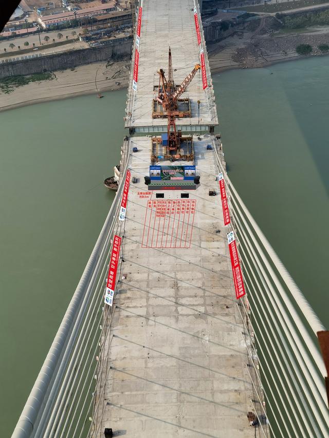 盐坪坝长江大桥主桥合龙施工从1月9日8时开始,历经上、下游主纵梁和横梁的吊装、焊接,以及桥面板安装、湿接缝混凝土浇筑,顺利实现合龙。