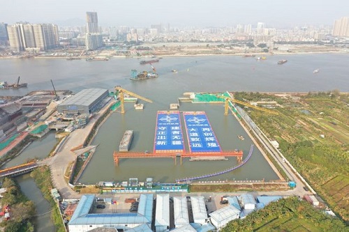 1月18日上午10时,项目施工方开始启动E4沉管浮运前的准备工作,约五个多小时后潮位达到浮运要求,E4管节绞移至指定区域,将于傍晚完成系泊。整个浮运出坞过程历时约8.5小时。据施工方介绍,车陂路—新滘东路隧道共有4节沉管,分两批次浮运安装。此次首批两节沉管完成浮运出坞后,离2022年底隧道建成通车的目标又近了一步。