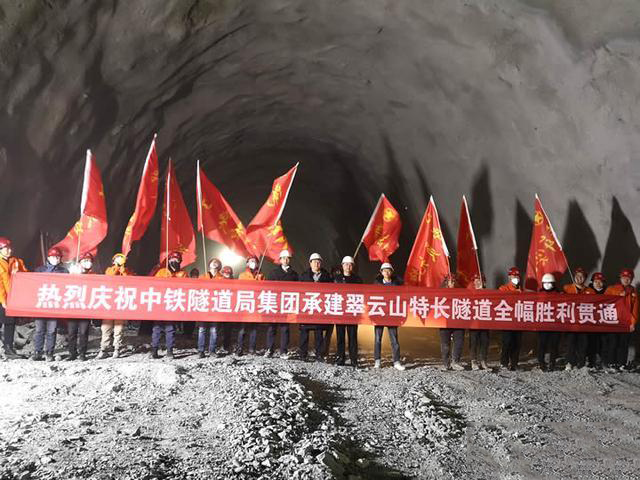 从2019年5月开工以来,各参建单位在确保和安全质量的前提下,采用斜井+支洞方式增加工作面,施工掌子面由12个增加到达20个,全力以赴推进翠云山隧道工程建设。从而实现历时20个月完成隧道贯通,比原计划缩短了6个月,实现了用最短的时间完成了最长隧道的掘进任务。