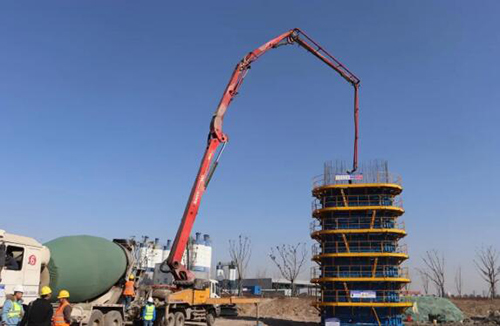 沪苏湖铁路工程站前Ⅲ标段位于苏州市吴江区,此次浇筑的是该标段苏湖特大桥盛泽桥段242号墩,该墩柱为斜坡式(45:1)圆端型实体墩,墩身高15.5米,采用分段浇筑成型的施工方法,0~12.5米于1月13日浇筑完成;剩余的12.5~15.5米于1月22日浇筑完成。