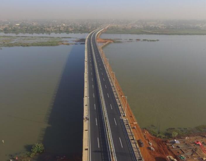 据介绍,赛义尼·孔切将军大桥项目主桥长928米,连接道路长2.5公里,是中国政府援尼历史上规模最大的项目。大桥跨尼日尔河两岸,连接尼亚美的南北区域,由中国港湾工程有限责任公司承建,于2018年7月开工。