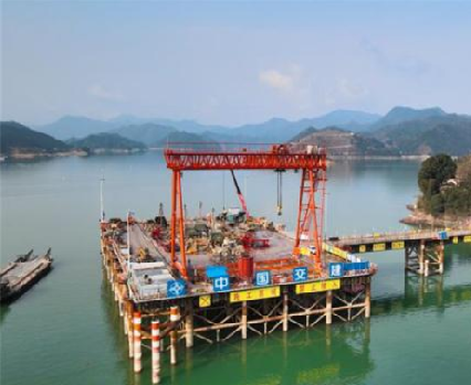 由中交二航局承建的湖南省官新高速公路第七合同段位于益阳市安化县境内,全长4.15千米,包含特大桥2座,隧道1座,路基2段。其中马路口资水特大桥是官新高速公路全线重点控制性工程,6#主塔为H型索塔,高达202.4米,大桥跨越柘溪水库,主跨500米,为湖南省在建最大跨度的钢混组合梁斜拉桥。