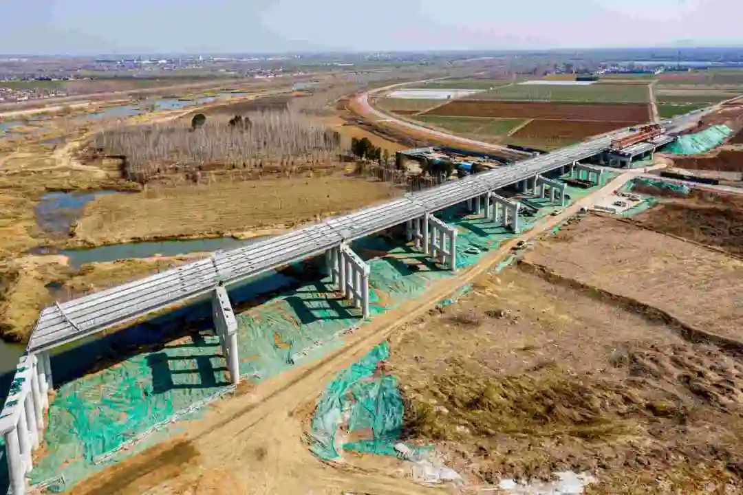 自2020年11月底S104以西至任城终点段36.7公里路段通车后,大大缓解了济宁城区的交通压力。目前,作为东段工程的控制性节点工程,泗河大桥段正紧张施工中,根据工程进度,预计今年6月底桥梁主体可完工。