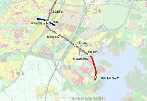 按照第三期建设规划批复,轨道交通4号线东延段从4号线东钱湖站引出,向东延伸一站一区间。线路长度约2.5公里,采用地下敷设方式,设车站1座,土建工程与国际会议中心同步建设。国际会议中心站为地下二层岛式站台,车站主体总长362米,共设2个出入(另设预留接口3个)。