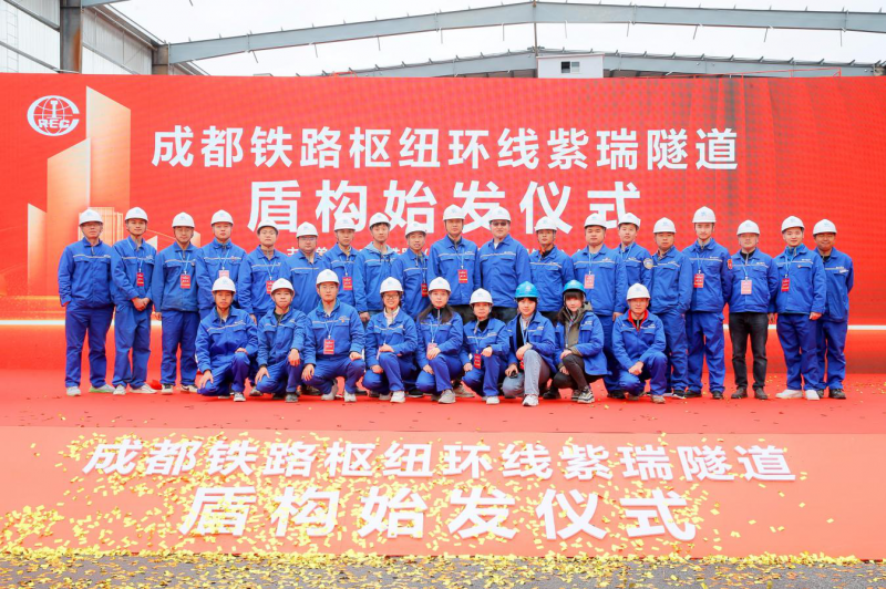 “紫瑞号”盾构机开挖直径12.84米,整机总长约155米,总重量约3200吨,是国内首次用于密集富水卵石地层施工的超大直径泥水盾构机。据介绍,紫瑞隧道工程地处成都市区繁华地段,下穿地铁站、市政地下管线、高架桥、铁路线、河流等不同区域,周边环境复杂,沉降控制严、施工风险高。中铁二局的建设者自进场以来,大力发挥资源整合能力和科技创新能力,针对本项目始发站接收覆土浅、大粒径卵石含量高、单轴抗压强度高、泥岩结泥饼风险高等重大技术难点,量身定制了“紫瑞号”这台12.84米超大直径泥水盾构机,并在在抓好疫情常态化防控的前提下,顺利克服征地拆迁、管线迁改及老旧铁路拆除等难题,加速推进始发井建设、盾构机设计制造和组装调试,最终顺利实现盾构始发。