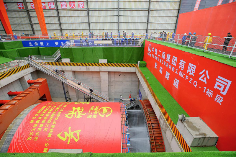 2月26日上午,国内最大直径土压-泥水双模盾构机—— “紫瑞号”盾构机在中铁二局成蒲铁路紫瑞隧道项目建设现场顺利始发,成都铁路枢纽环线建设实现再提速。