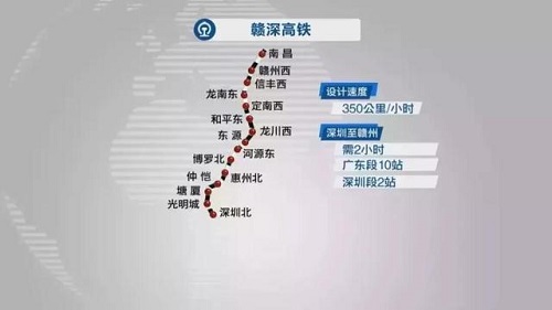 截至目前,赣深高铁深圳段路基、桥梁、隧道全部贯通,正进行无砟轨道施工,预计于今年年底通车。届时 , 赣州至深圳乘车时间将由现在的 7 小时压缩至 2 小时 , 对推动赣粤两地深度融合、发挥粤港澳大湾区经济辐射带动作用具有重大战略意义。