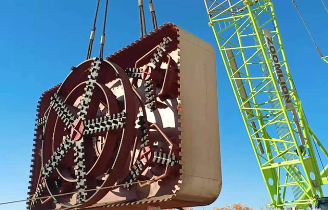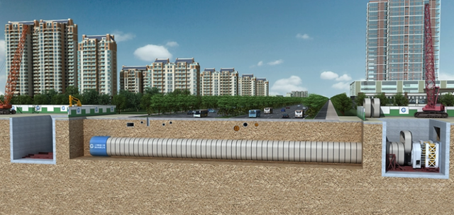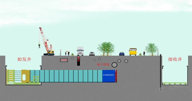 该工法采用土压平衡顶管机,利用机头前端刀盘切削土层,主顶油缸提供前进动力克服机头迎面阻力和摩擦力,使后续箱涵相继进入地层,形成贯通的通道。其工作原理与盾构相同,均是采用非开挖式掘进施工,但其尺寸比盾构小、管片拼装形式及操作模式也与盾构不同。此次使用的土压平衡顶管机,长4.1米、宽6.9米,用于粘土、淤泥质粘土、粉质粘土及砂质粉土等地层,适用于浅层地质及管线比较多的环境。而传统盾构机长80.0米、盾壳外径6.3米,主要用于隧道掘进。