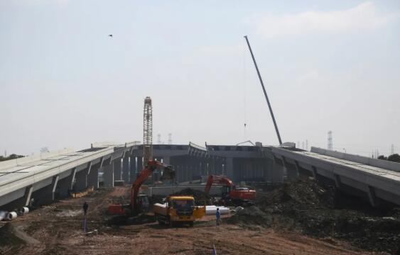 除了地面道路以及跨河桥梁施工外,已经完成结构贯通的高架桥目前也正在抓紧桥面施工以及高架与地面衔接处施工的前期准备工作。