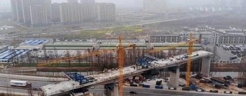 南沿江项目一分部全线共四五座连续梁,分别为跨汤水河、跨句容河、跨西部干线、跨104国道、跨洪武路连续梁。跨西部干线连续梁于去年八月中旬便已合龙完成,跨汤水河则是在今年1月份完成合龙。