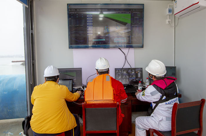 “首节沉管的精准沉放对接,为项目全体建设者打了一剂强心剂。本次沉放之前,我们又做了大量工作,充分总结首节沉管下沉的经验,从施工组织设计、全过程信息化打造、智能控制系统优化等各方面进行了全面升级,相比于上次9个小时完成下沉对接,本次对接我们仅花费了5个小时,轴线偏差为1.3厘米。”项目执行经理、总工程师孙晓伟介绍。
