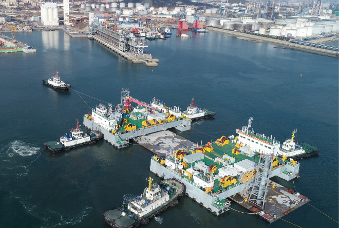 3月9日早上开始,北方地区首条跨海沉管隧道——大连湾海底隧道,进行2021年里的第一次沉管海底安装施工。