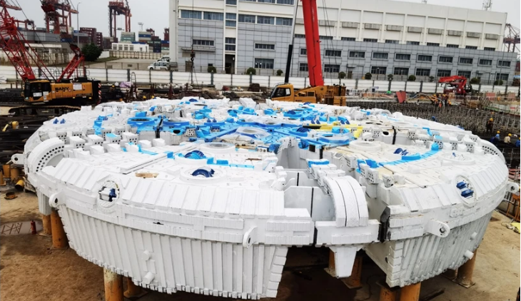 此次采用的泥水盾构施工盾构机高度超过5层楼房,盾构机主要构件全长140米,重量4650吨,盾构机开挖断面是常规地铁盾构的6倍,功率约10000千瓦,比复兴号高铁总牵引力高10%,推力高达2.46万吨,是我国最大运载火箭“长征五号”的24倍,盾构机拥有完全自主产权,代表国际先进水平,是名副其实的大国重器。