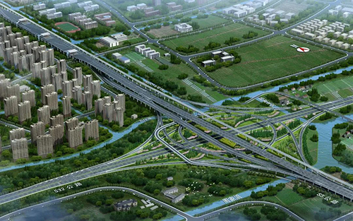 项目高架立交施工全程采用预制装配,预制率达90%以上。桥梁下部结构立柱、盖梁以及桥梁上部结构小箱梁、组合梁、钢箱梁、桥面板等部分都是预制构件。采用大型运输工具,运输至施工现场,采用机械化施工方法,像“搭积木”一样实现桥梁构件的预制拼装。