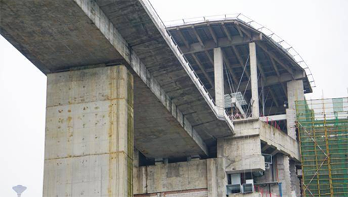 在重庆轨道交通九号线邮轮母港站(暂用名)施工现场,据悉,邮轮母港站位于重庆两路寸滩保税港区内,为上下四层的厅台分离侧式高架车站,总建筑面积逾3万平方米,距保税港站约900米,距集“船、港、城、游、购、娱”于一体的寸滩国际邮轮母港约500米。