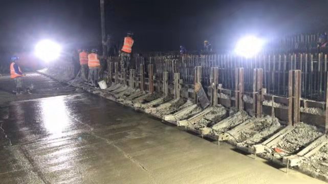 春节过后,无锡多雨,项目如何保质保量推进?相关负责人介绍,一节底板长30米、宽43米,需要浇筑2000立方米混凝土。“大体积的混凝土浇筑耗时长,还受天气影响。”为了保证按时如期完工,三个班组流水作业,最大限度调配资源,昼夜不停歇,工地上24小时灯火通明,“小雨大干,中雨抢着干,大雨错开干。”