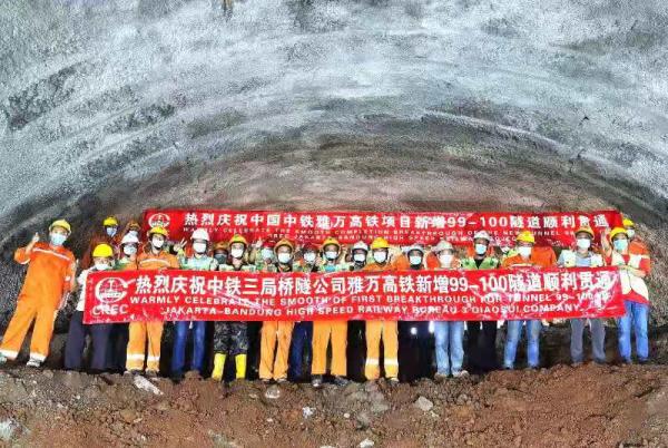 3月16日,印尼雅万高铁施工现场传来喜讯,由中国中铁三局承建的99-100新增隧道历时6个月艰苦努力提前一周顺利贯通。这标志着雅万高铁项目建设又取得一项重大突破性进展,为雅万高铁明年全线贯通奠定了坚实基础。