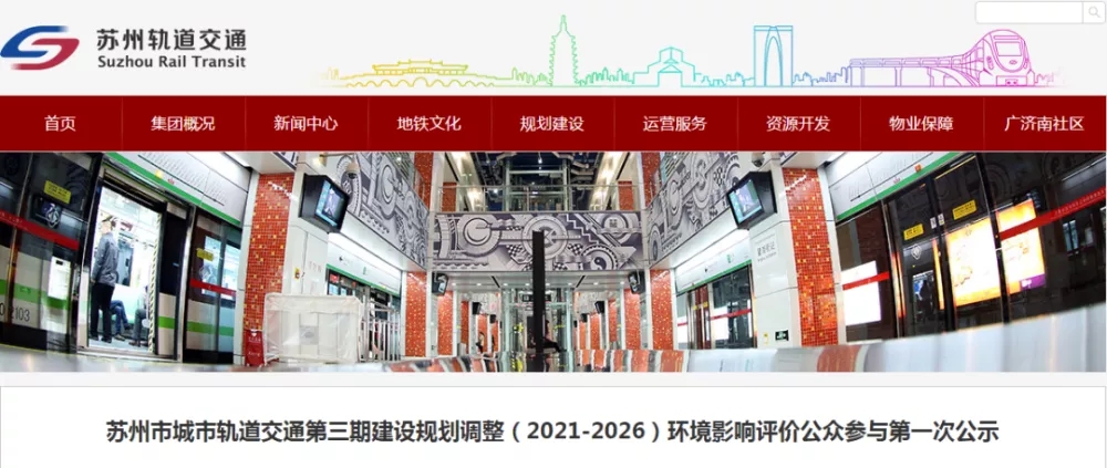 3月17日,苏州轨道交通在其官网发布了苏州市城市轨道交通第三期建设规划调整(2021-2026)环境影响评价公众参与第一次公示。