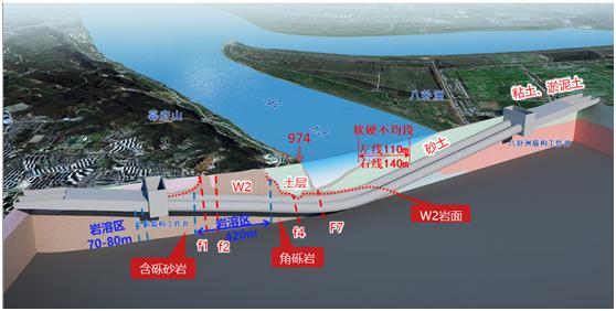 和燕路过江通道被外界称为“迄今为止长江上最难建的过江通道”,地质情况极为复杂,犹如一个天然的“地质博物馆”。施工时盾构机需要穿越上软下硬地层、软硬不均地层、江底断裂带、岩溶区域及全断面硬岩地层等,江底高水压(0.79兆帕)处覆土厚度仅10.25米,还要穿越5条断裂带。