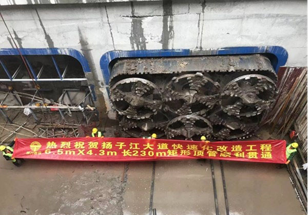 南京扬子江大道三标管廊矩形顶管接收井钢洞圈内的土墙按预定方案轰然倒下,在建设者们的欢呼声中,“扬子江3号”的刀盘缓缓转动,顶管机整体缓缓向前破壁而出。这条目前南京最长(230米)矩形顶管顺利贯通,工程建设又取得了重大进展。