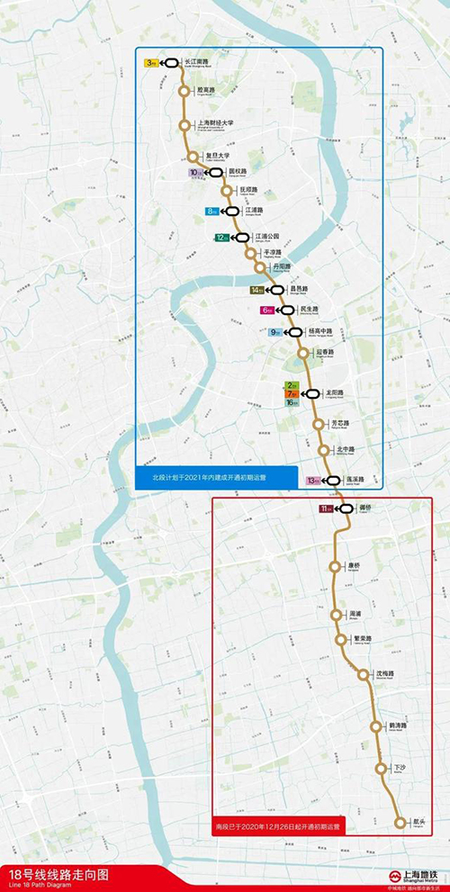 4月1日上午,在位于18号线江浦路站地下站台处,全线最后一节钢轨铺设顺利完成,标志上海轨道交通18号线一期北段轨道工程实现全线贯通。18号线一期工程起于航头站,穿越浦东、杨浦、宝山三区,终于长江南路站,全长约36公里,南段已于2020年12月26日起开通初期运营,北段预计今年底开通初期运营。详见↓