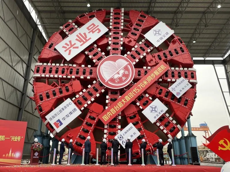 “兴业号”盾构机由中交天和自主设计、研发、制造,应用于珠海兴业快线工程建设,全长130米,重达4500吨,刀盘直径15.76米,国产化率98%以上,同步掘进、主动铰接、刀具全状态监测等技术创造了国内外同类装备的新高度。
