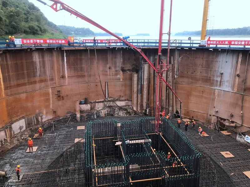 4月1日下午,合江白沙长江大桥南岸主墩(4号墩)承台启动浇筑,标志着白沙长江大桥水中最后一个节点工程即将完工,为今年汛期来临前南岸塔柱全部出水面奠定了基础。