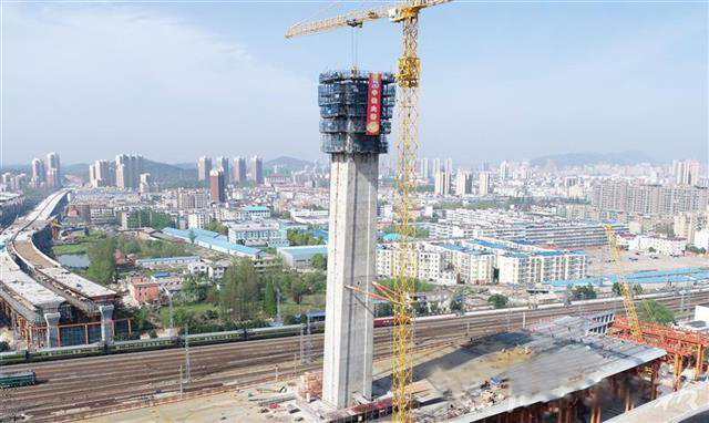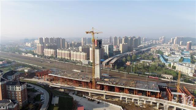 4月6日,河南省信阳市新十八大街南段贯通工程、跨京广铁路转体斜拉桥塔柱封顶,该桥由在鄂央企中铁大桥局承建。