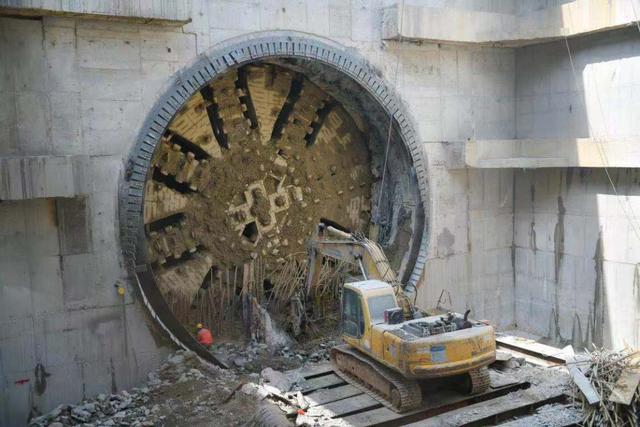 4月6日,盾构机推进最后10米,到达接收井位置后进行拆机,由650吨的履带吊吊出后运到鲁家峙始发井后,进行二次组装,之后向东洞掘进。