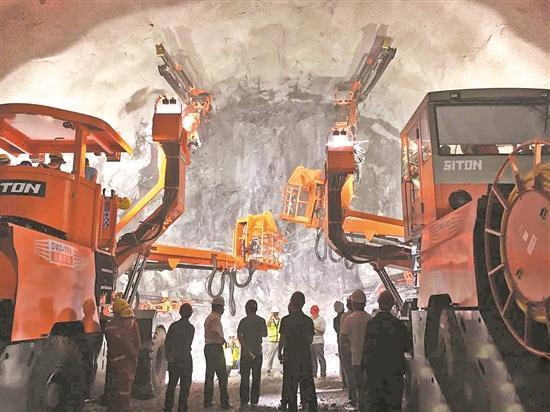 为克服地质环境给隧道施工造成的困难,建设与施工单位采用可视化钻孔、三臂凿岩台车、水压光面爆破相结合的数字化施工掘进方式,将爆破超挖控制在10毫米以内,在化解施工风险的同时,创造了月掘进200米的全线施工纪录。